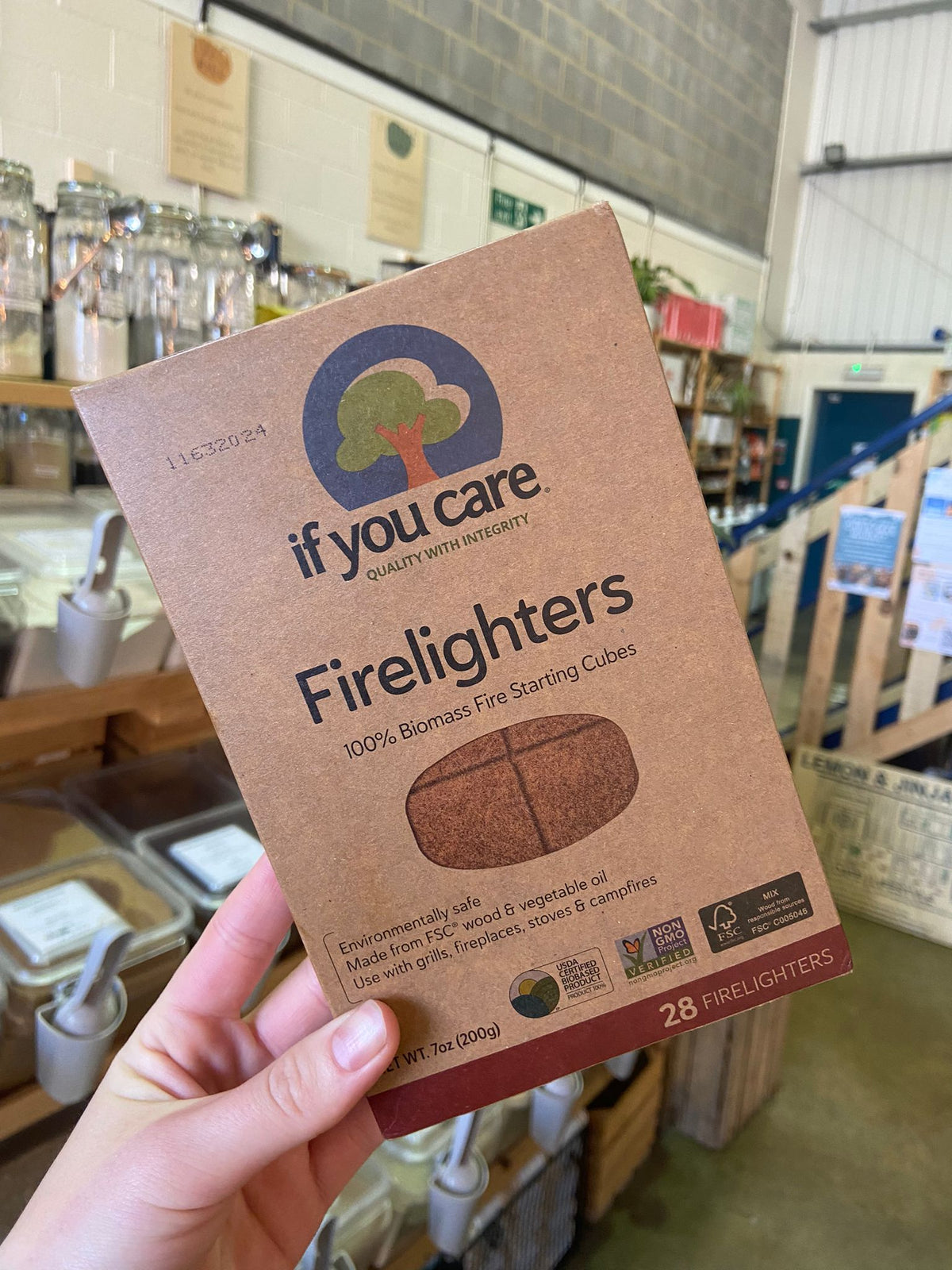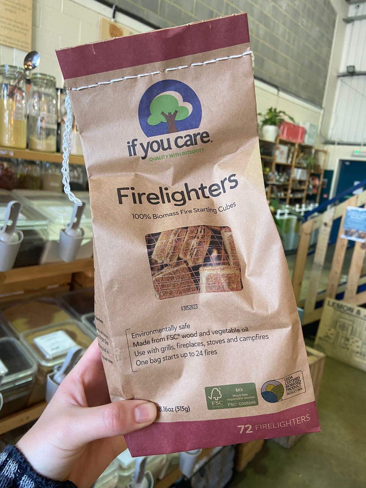 If You Care 100% Biomass Firelighters contain two ingredients only: FSC wood and non-GMO vegetable oil. Simple as that. Use these environmentally friendly fire starting cubes for fireplaces, BBQ grills, wood burning stoves/ovens and campfires/outdoor fire pits.
