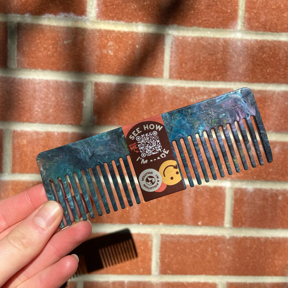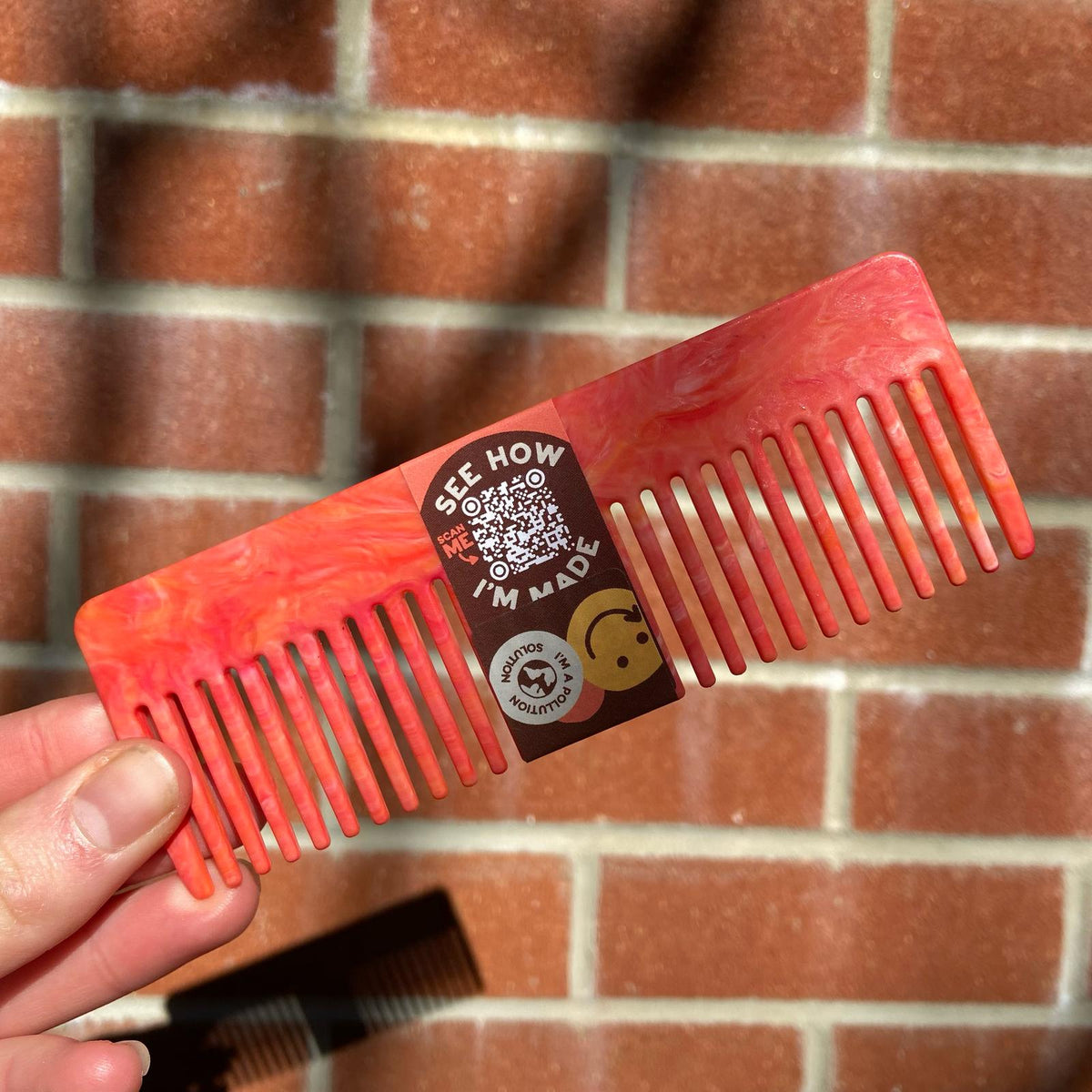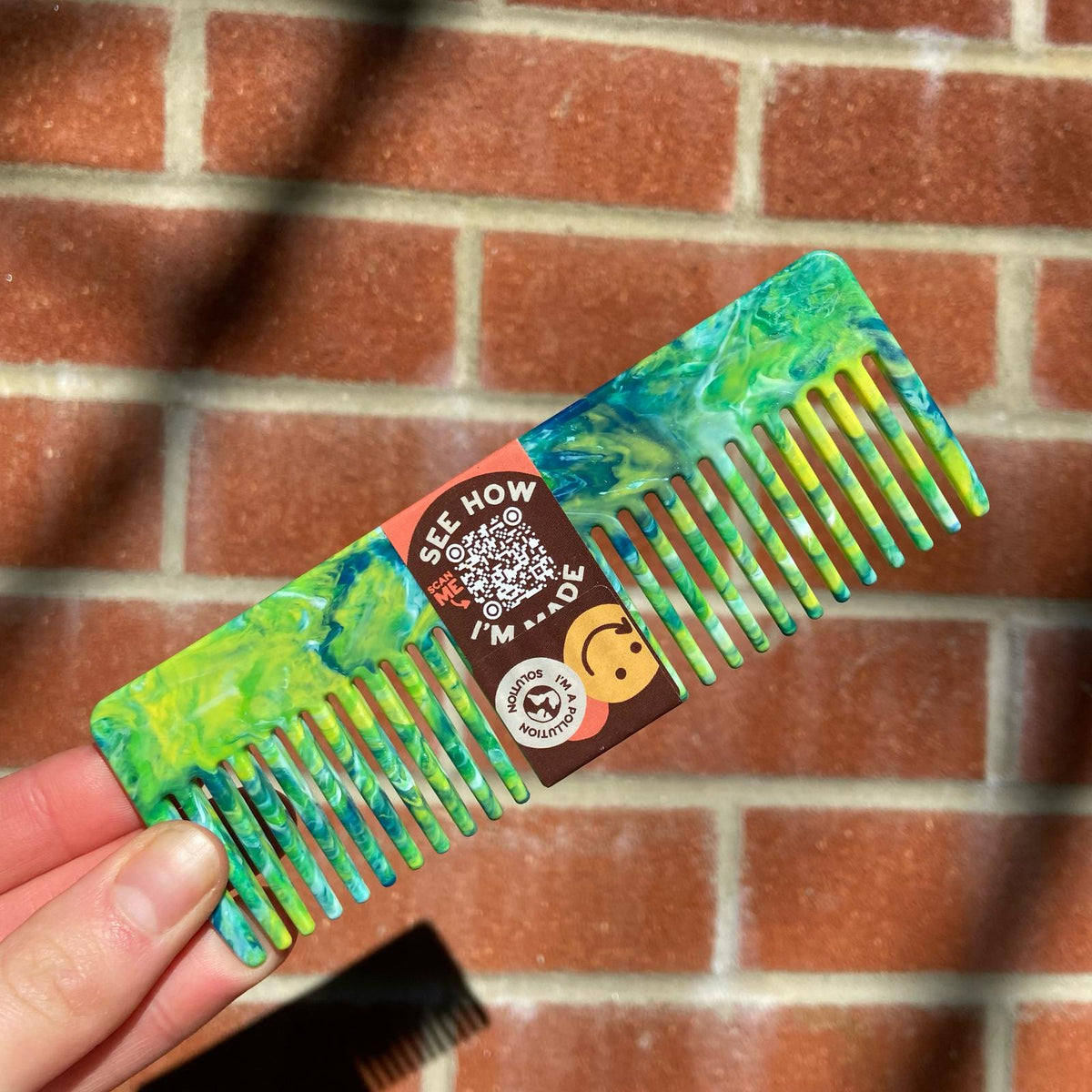 Crafted from recycled plastic, our long comb is here to prove that a sweet hair style doesn’t have to cost the Earth - literally. Whether you're creating a work of hair art or just untangling one of life's messes (hair-related or otherwise), it's the perfect partner for crafting 'dos that will make heads turn faster than you can say "hot damn, they’re some environmentally responsible follicles". So, go ahead and elevate your hair game while lowering your carbon footprint – it's a win-win without having a single hair out of place.