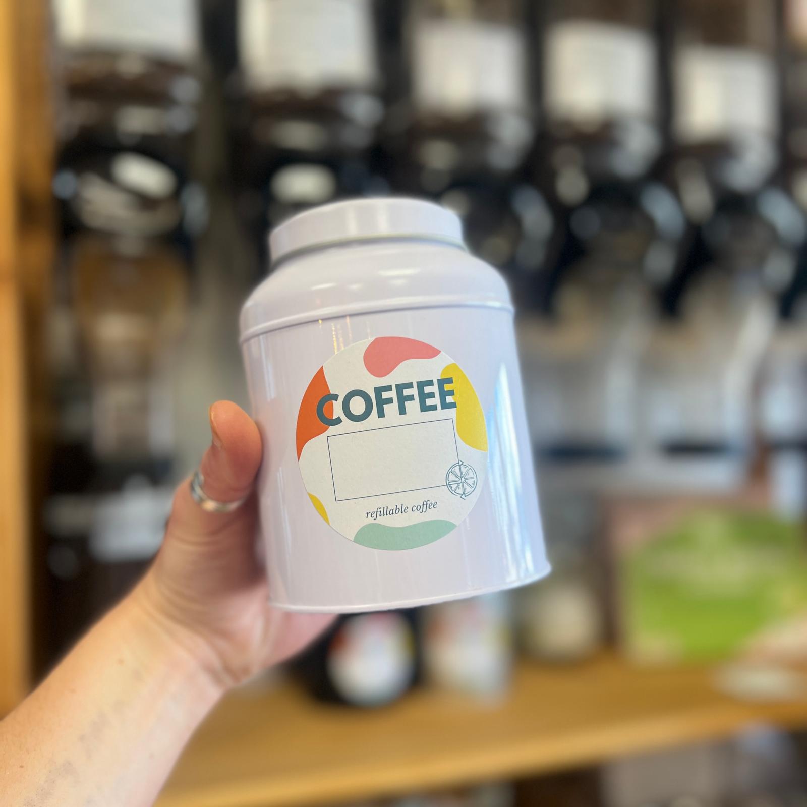 250g round domed tin with slip lid and inner lid - perfect for storing your fresh teas and coffees! We love these for our coffee beans / freshly ground coffee.