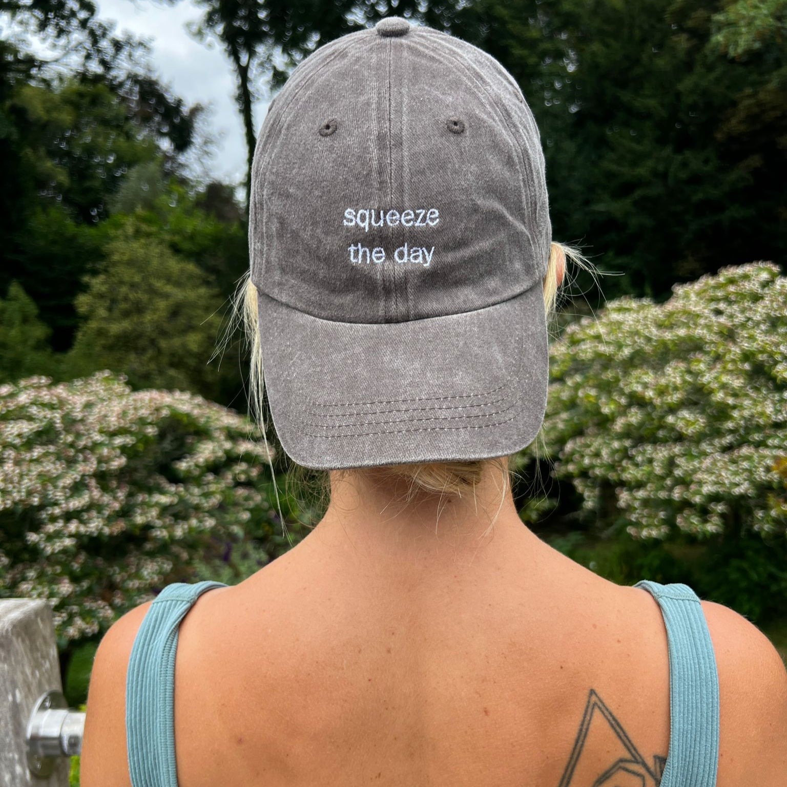 A daily dose of positivity with a nod to our Lemon & Jinja roots. Jesse’s embroidered 'Squeeze the Day' celebrates the zest of life and reflects the playful, citrus-inspired energy of our logo. The cap’s soft-washed, faded vintage colours give it that perfectly broken-in, retro feel: a cheerful reminder to slow down, live sustainably, and make the most of every moment.