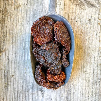Maximise the flavour of these intense Sun dried tomatoes by adding to recipes at the beginning, or rehydrate by soaking in hot water for 20 minutes. Rinse, drain and store in good quality olive oil for use at anytime.