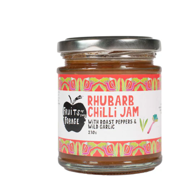 This sweet chilli preserve bursts with the flavours of rhubarb, smoky roast peppers, foraged wild garlic and cooking apples.