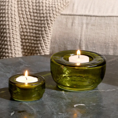 These tealight holders, made from recycled glass in a jewel-like shade of rich emerald green, create a striking backdrop to a festive table setting adding a subtle pop of colour without any fuss. We love them scattered along the length of an evening table or dotted around a living space as the starting point for festive decorating.