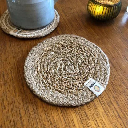 Material: These coasters are made from natural jute, natural seagrass and coloured jute. The coloured jute is 100% Azo free.