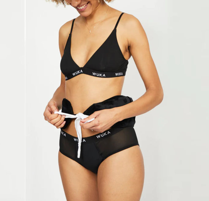 Our new Water Bottle comes with a tie to hold it snugly around your tummy or back to ease and soothe those period aches and pains. It has also your pocket to keep your hand toasty or to hold your phone inside.