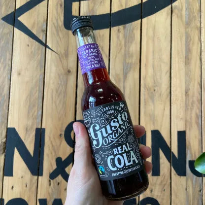 Great Taste Award-winning Gusto Organic Real Cola is the first organic-certified, lower calorie cola produced in the UK, sweetened with organic Fairtrade blue agave. Gusto Organic Real Cola blends organic spices, essential oils and African kola nut with spring water.