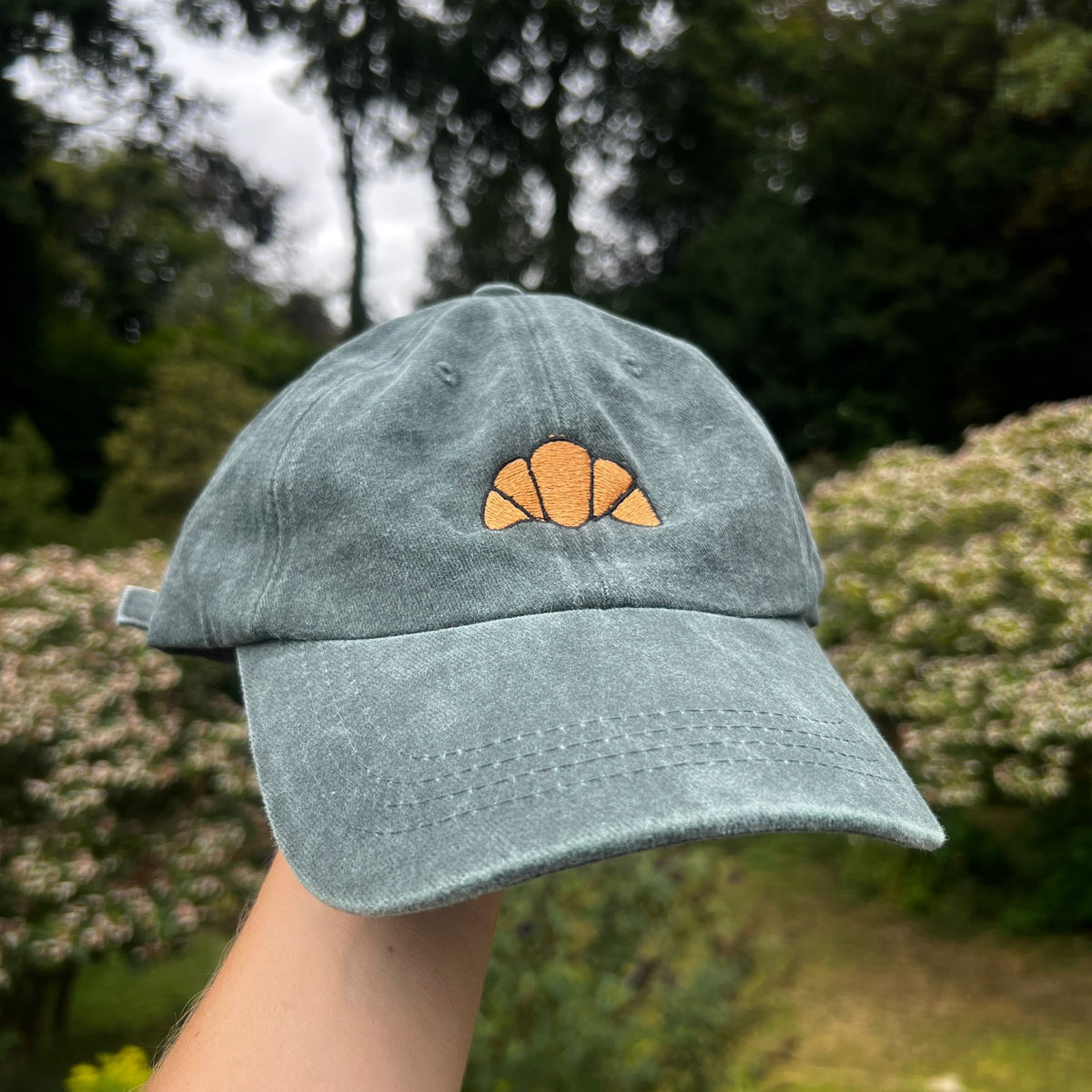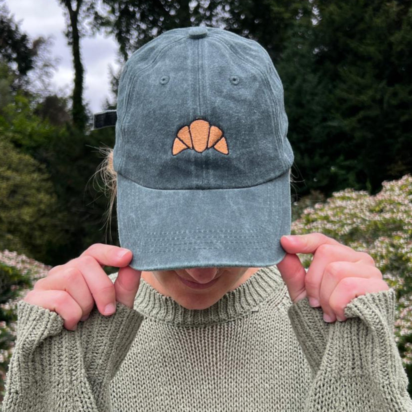 Freshly baked charm you can wear. Jesse’s playful croissant embroidery is stitched onto a retro, soft-washed cap, making this the perfect companion for café mornings, market strolls, and buttery daydreams (and obviously a croissant from Lemon and Jinja)