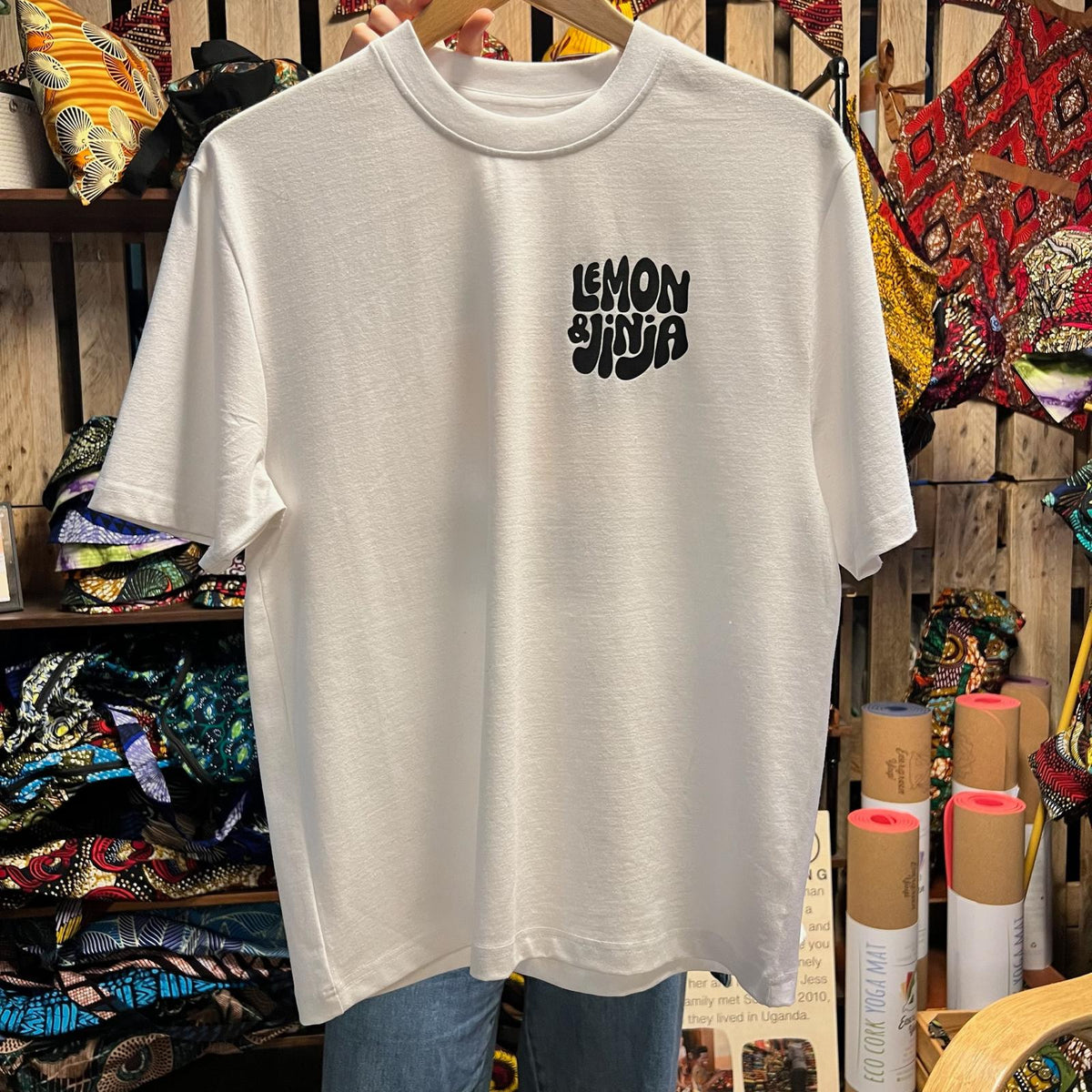 The off-white tees have subtle 'specks', a nod to their sustainable origin - crafted from waste and recycled materials, embracing their raw, unprocessed charm.