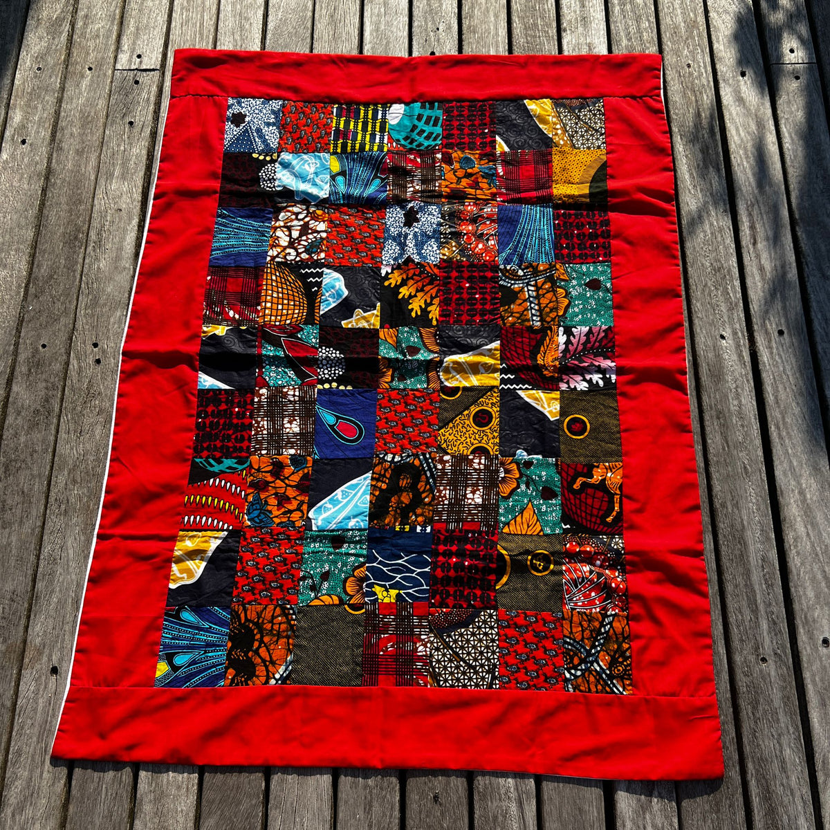 Made from the offcuts of the other products that Susan makes for us! The blankets are made up of different squares with a coloured border. The perfect bedspread, baby gift, blanket for sofa... And more!