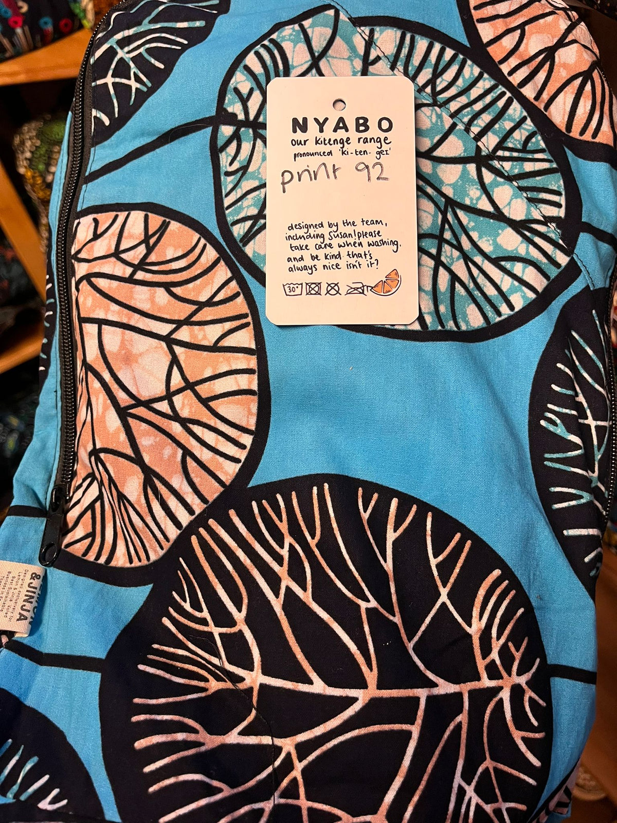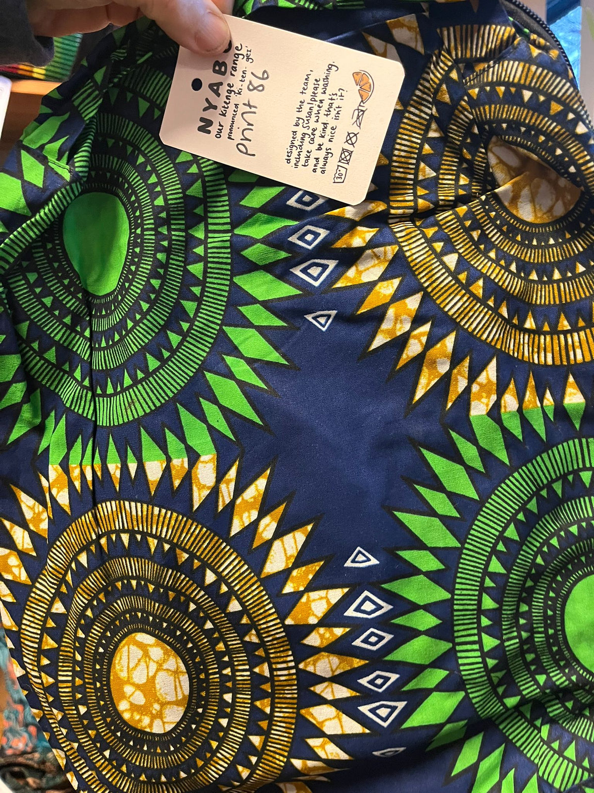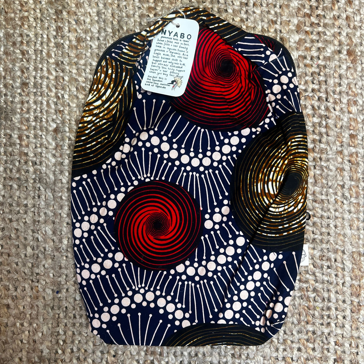 Handmade by Susan Opok in Uganda. Jess first met her in 2011 and they have always chatted about setting up a business together. When Lemon & Jinja started they created Nyabo, a kitenge business making bespoke products. The pattern is called ‘Kitenge’ and is East African. Each sale from the Nyabo range makes a huge impact to Susan and the work she does in Uganda.