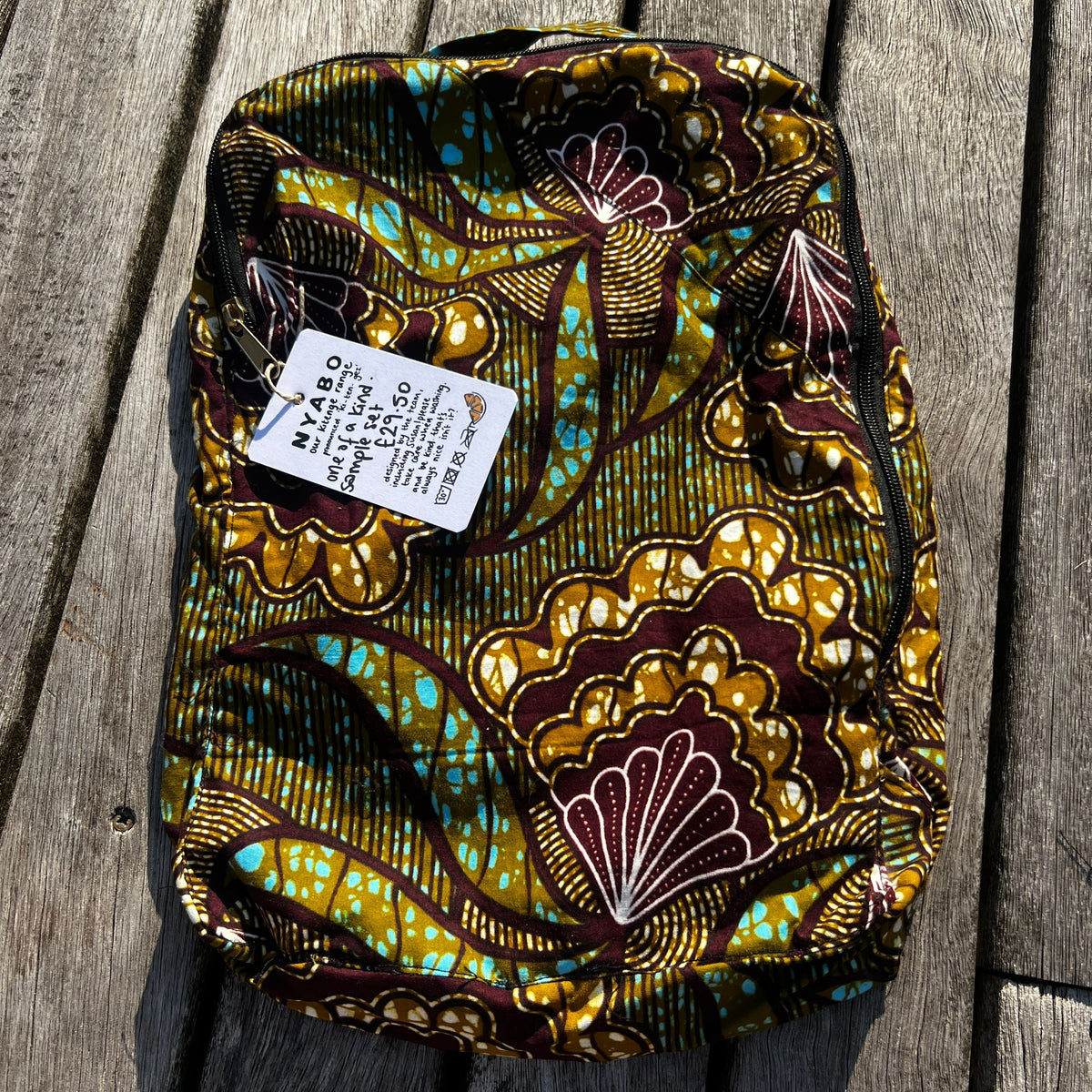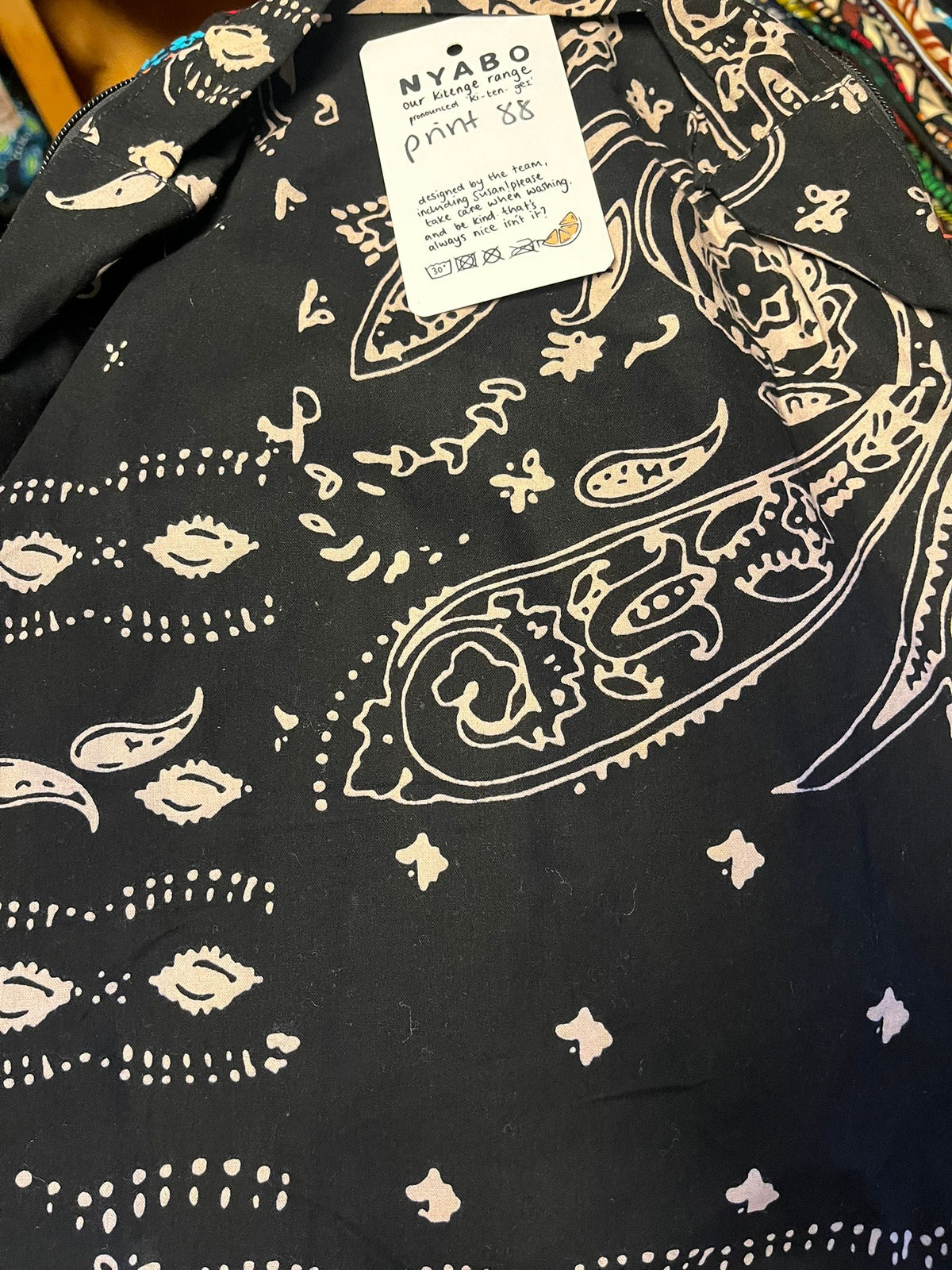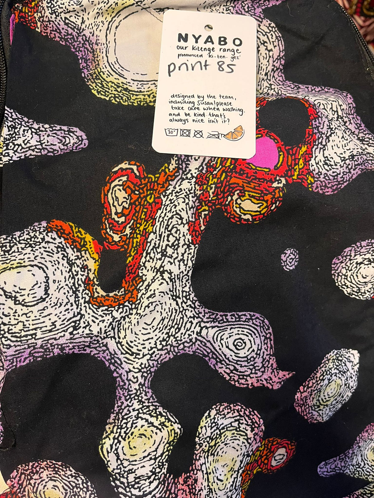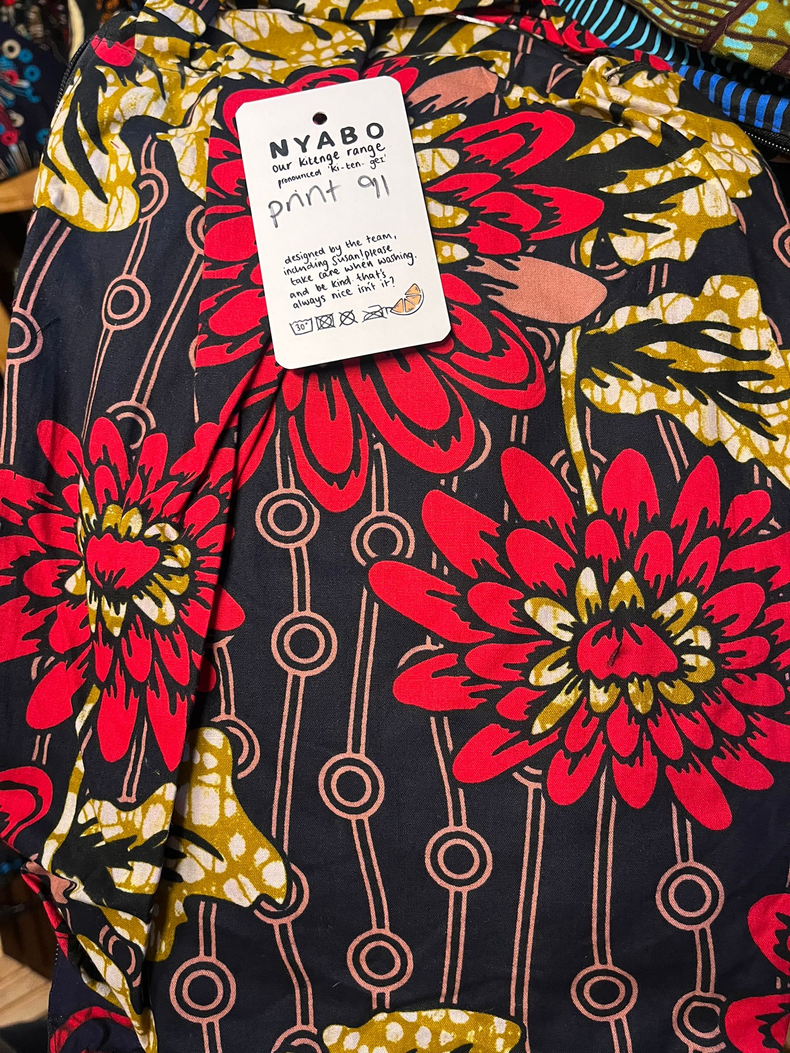 Handmade by Susan Opok in Uganda. Jess first met her in 2011 and they have always chatted about setting up a business together. When Lemon & Jinja started they created Nyabo, a kitenge business making bespoke products. The pattern is called ‘Kitenge’ and is East African. Each sale from the Nyabo range makes a huge impact to Susan and the work she does in Uganda.