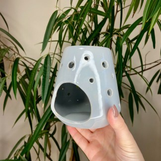 Large, simple, spotted ceramic oil burner. Please checkbox which colours you'd prefer - subject to availability. Colours: White, Grey or Turqoise.