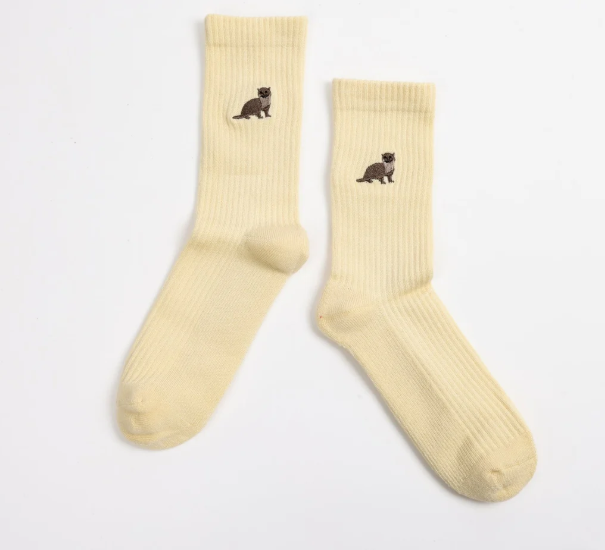 Soft, breathable, and planet-kind. These ribbed bamboo socks are crafted from sustainable, skin-friendly fibres for all-day comfort, natural odour resistance, and a snug, supportive fit. Each pair is finished with a beautifully embroidered animal - choose from hedgehog, puffin, black panther, sloth, or otter - adding a subtle touch of personality to your everyday wear.