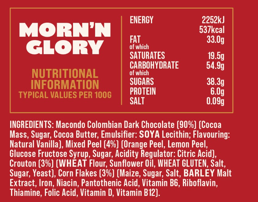 Morn'n Glory: Cornflakes, toast & marmalade. 150g (allergens and ingredients in photos)