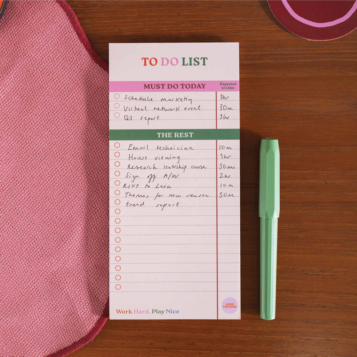 To Do List Pad 'Work Hard Play Hard'