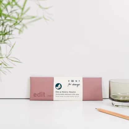 Easy close pencil case, handmade in Italy from recycled leather and debossed with ‘Ethos’ design.