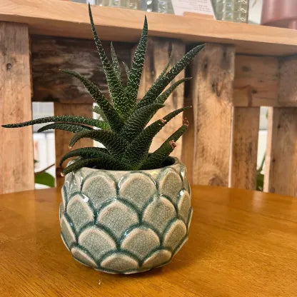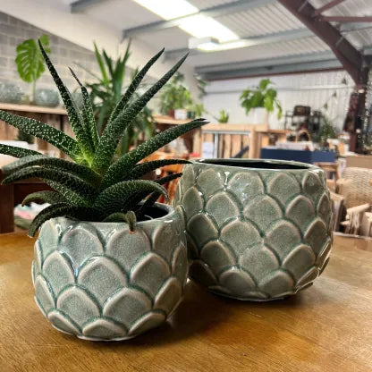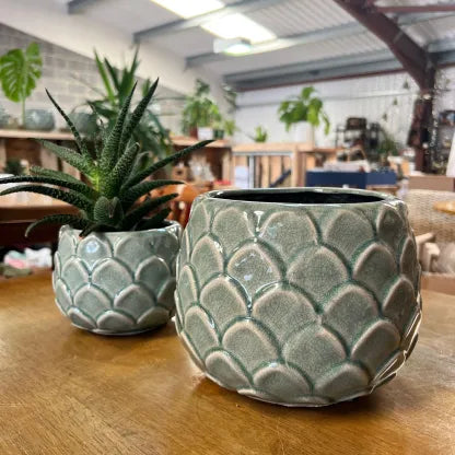 Pots needn't be plain. With a distinctive ceramic pattern, the Artichoke is modelled on the outer leaves of, you've guessed it, an artichoke. The scallop-like appearance is finished with an aqua-coloured glaze. Plant with succulents and cacti, and place on a windowsill or open shelf, to bring a botanical touch to your interiors.