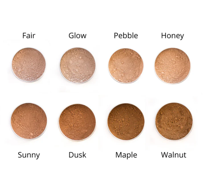 Maple foundation – yellow iron oxide, titanium dioxide, mica, zinc oxide, ultramarine, red iron oxide.
