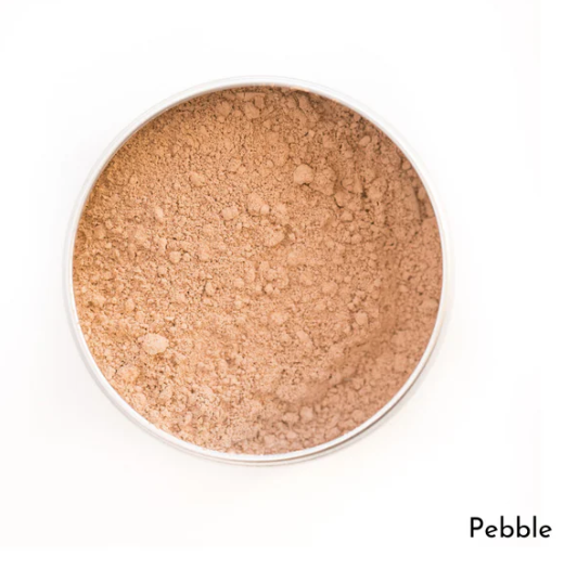 Pebble foundation – zinc oxide, titanium dioxide, iron oxide, kaolin, titanium dioxide, mica.