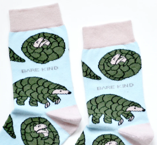 Bare Kind donate 10% of profits to the David Shepherd Wildlife Foundation, protecting pangolins from extinction. They make great work socks, gym socks, and dress socks. Pangolin socks make the perfect, colourful gift for animal lovers.