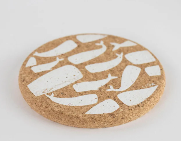 Organic cork placemats with simple contemporary designs. Inspired by nature, grown in Portugal, hand printed in Cornwall. Set of four coasters.