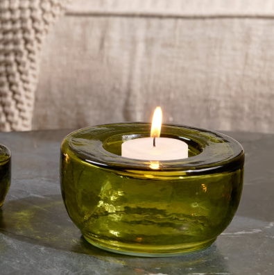 These tealight holders, made from recycled glass in a jewel-like shade of rich emerald green, create a striking backdrop to a festive table setting adding a subtle pop of colour without any fuss. We love them scattered along the length of an evening table or dotted around a living space as the starting point for festive decorating.