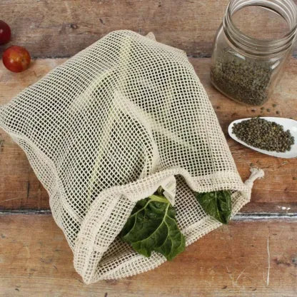 The bags have a handy drawstring closure and help to keep produce well organised in the fridge with the added bonus of being able to see the contents without the need to open and look inside! Take them with you on grocery trips and proudly refuse the single use plastic or paper bags that are still widely on offer!