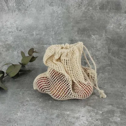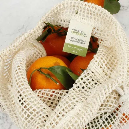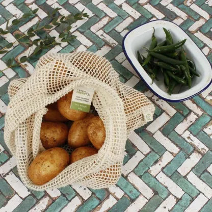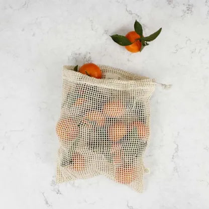 Great value organic cotton mesh produce bags designed for carrying fresh fruit or vegetables from the supermarket, market or farm shop and storing at home.