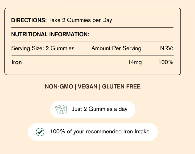 Perfect for vegans, vegetarians, or anyone who needs an iron boost, these gummies are gentle on the stomach and easy to take... just chew and go.