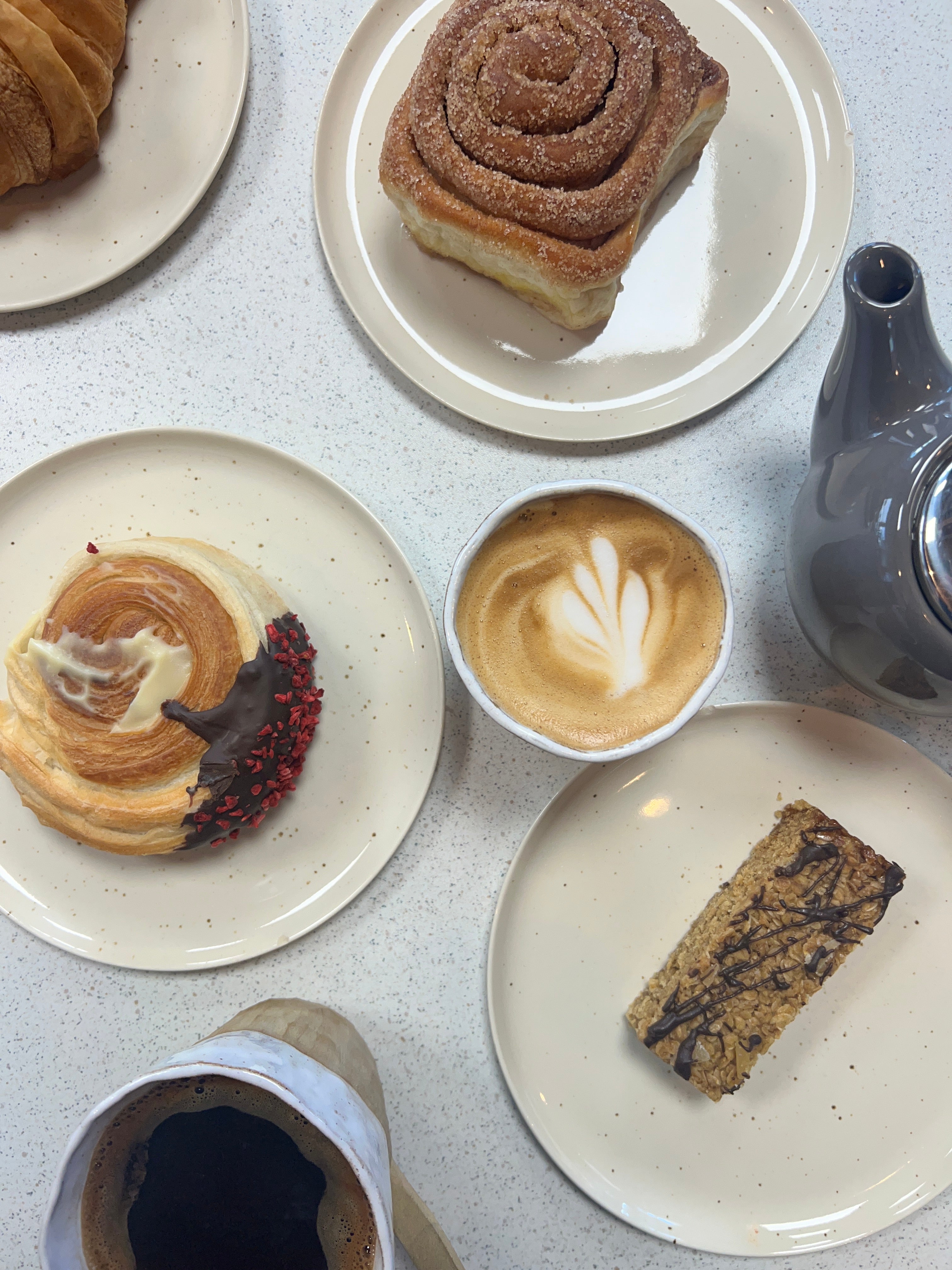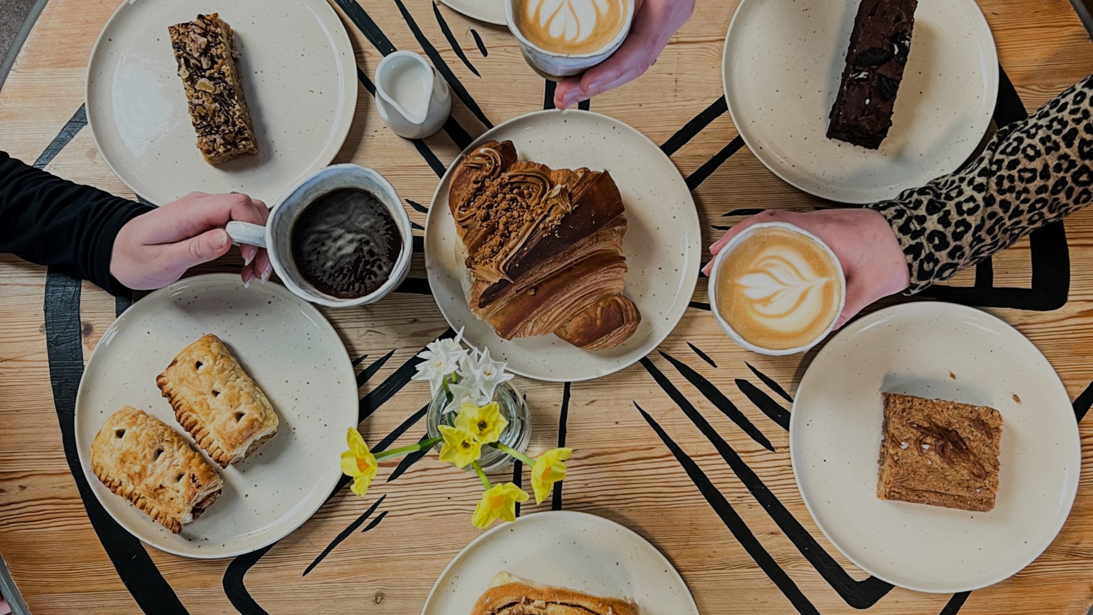 Our cake display cabinet is stocked with a variety of plant-based sweet treats such as flapjack, croissants, cookies, cinnamon buns, cake and much more!