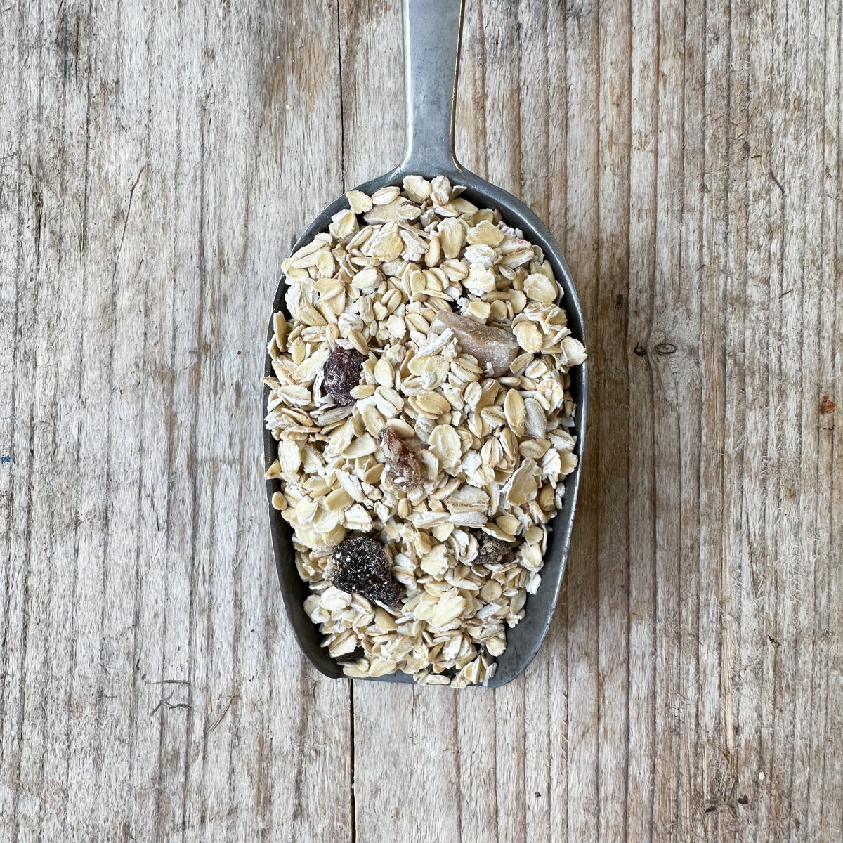 gluten free jumbo oats, sesame seeds, sunflower seeds, pumpkin seeds, brazil nuts, hazelnuts, almonds, sultanas, cranberries, desiccated coconut, gluten free rolled oats, chopped apricots
