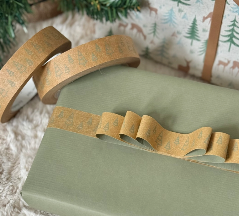 Wrap beautifully and sustainably this festive season with our Christmas Tree Paper Tape - the eco-friendly alternative to plastic tape. Made from sustainably sourced kraft paper with a natural plant-based adhesive, it tears easily from the roll and works perfectly with standard tape dispensers.